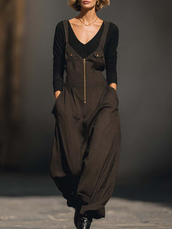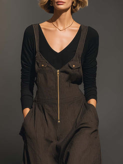 The Vintage Casual Urban V-neck Front Zipper Brown Textured Jumpsuit Overalls are designed for those who appreciate a blend of retro style and modern convenience. This jumpsuit features a distinct brown textured fabric that adds depth and character to your ensemble. Perfect for casual outings or adding a touch of vintage flair to your wardrobe, this piece promises comfort without compromising on style.