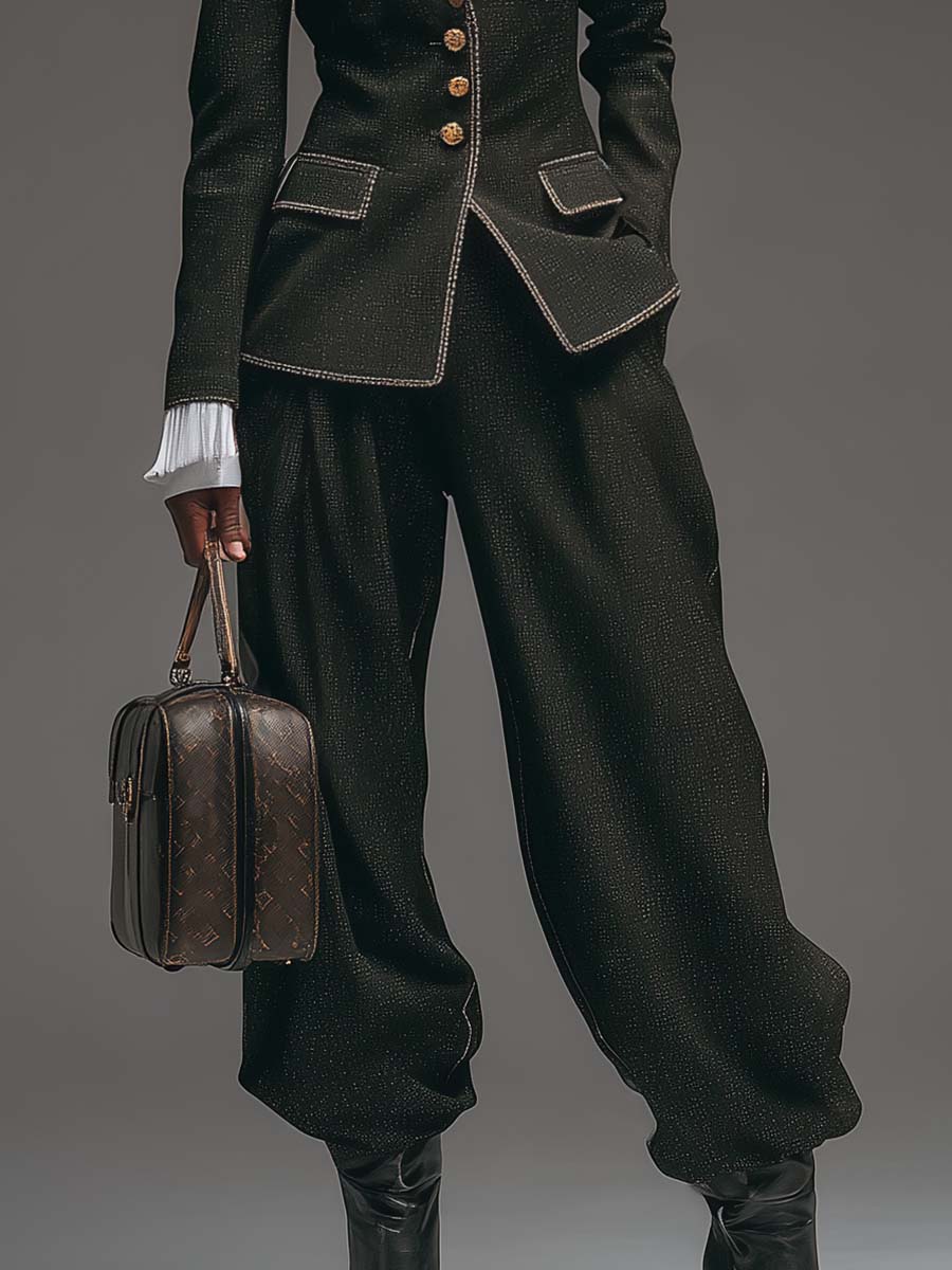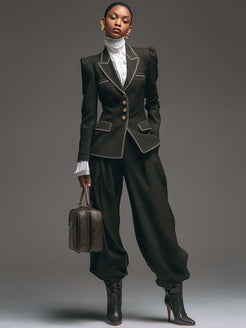 For an effortlessly chic look, pair this blazer and pants set with a crisp white blouse or turtleneck. Elevate the ensemble with pointed toe heels or sleek ankle boots. Add statement jewelry for a touch of glamour, or keep it minimalist for a more polished, professional appearance. Suitable for both corporate settings and stylish evenings out.