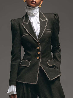 2.Design: Features a peak lapel with stylish white trim, adding a classic yet contemporary touch.
