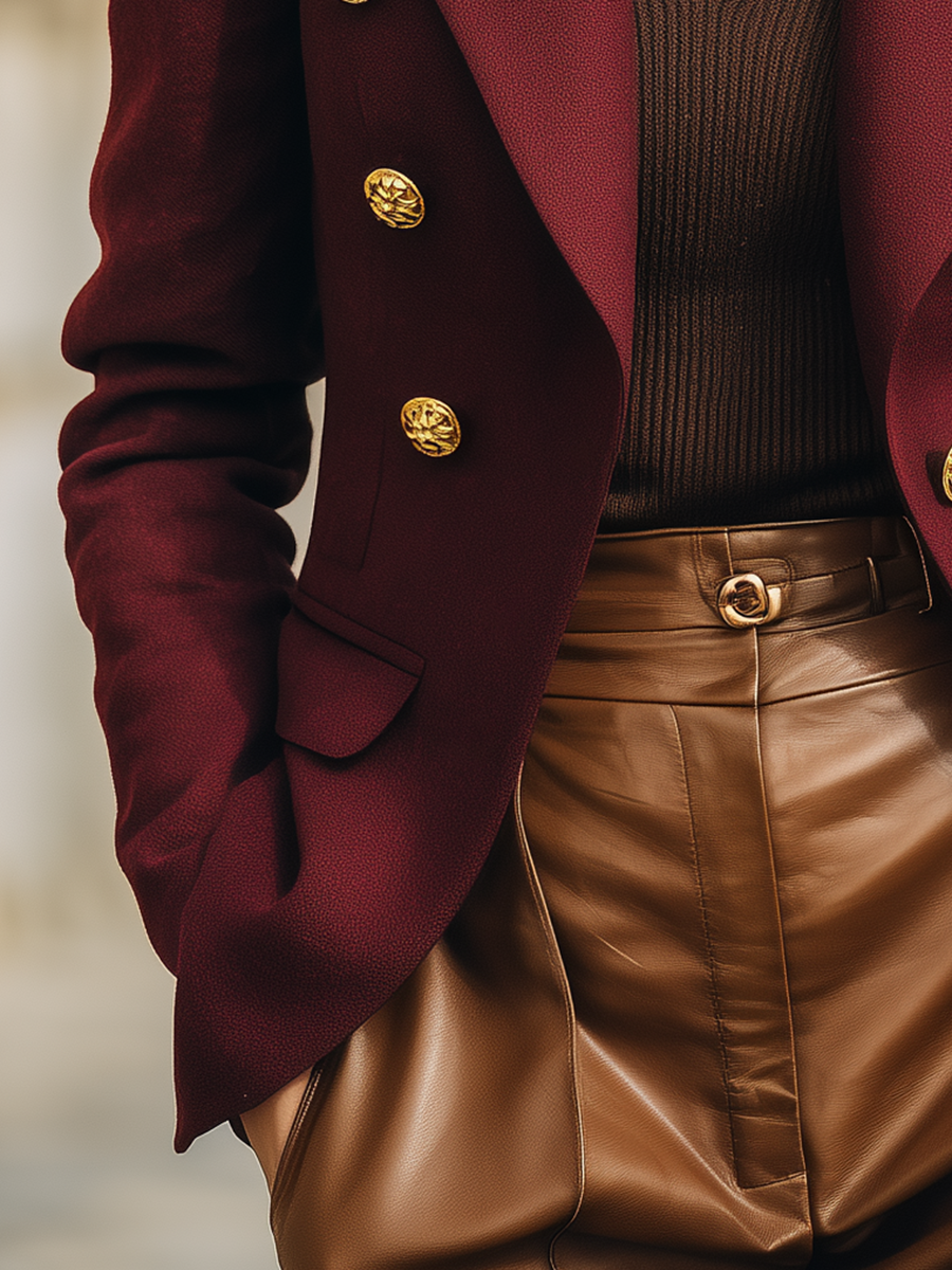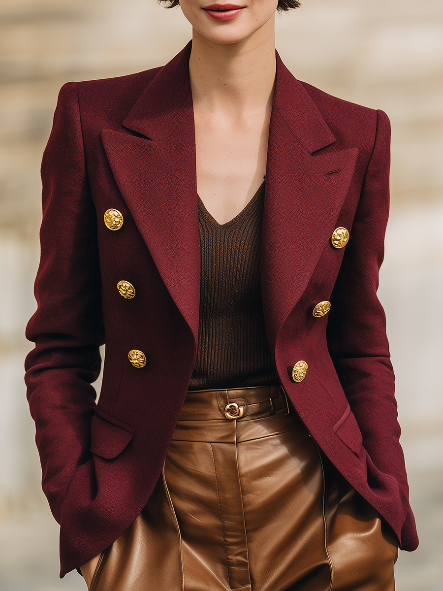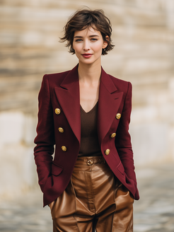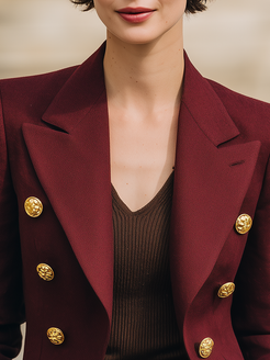 Styling the vintage gold button blazer is versatile and fun. For a chic office look, pair it with tailored trousers and a crisp white blouse, allowing the blazer to be the focal point of your outfit. Alternatively, for a more relaxed yet sophisticated vibe, wear it over a fitted turtleneck and distressed jeans, offering an unexpected contrast that combines classic and contemporary. Finishing the ensemble with pointed-toe pumps or sleek ankle boots creates a cohesive look that can easily transition from day to night. Additionally, accessorizing with gold or pearl jewelry can complement the gold button details and further elevate the outfit. Whether you're heading to a business meeting, a cocktail party, or a brunch with friends, the vintage fashion gold button blazer is a versatile staple that brings a touch of refined glamour to any occasion.