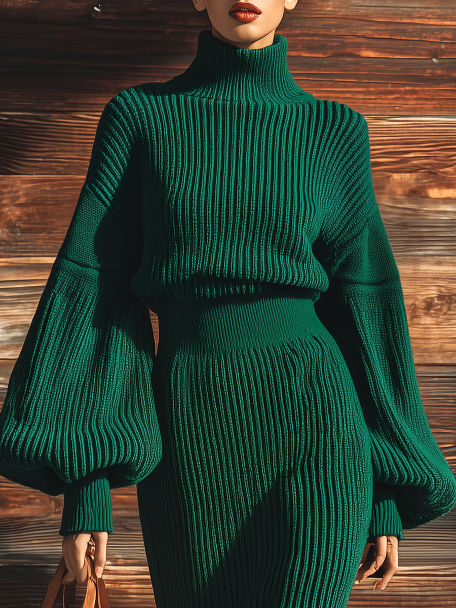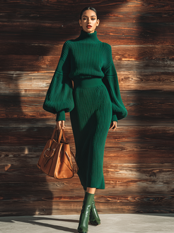 The vintage high-neck lantern-sleeve knit maxi dress is a stunning blend of classic elegance and modern comfort, perfect for creating a sophisticated yet relaxed look. Featuring a high-neck design, this dress adds a touch of demure chic, while the lantern sleeves offer a soft, billowy effect that creates an air of romance and femininity. The knit fabric drapes beautifully, providing both warmth and stretch, making it ideal for various occasions, from outdoor gatherings to cozy evenings at home.