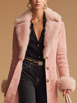The Vintage Outdoor Fashion Faux Fur Collar Pink Suede Coat is a stylish and luxurious outerwear piece that exudes elegance and charm. Featuring a soft pink suede material, this coat is designed to keep you warm while enhancing your wardrobe with a touch of vintage allure.