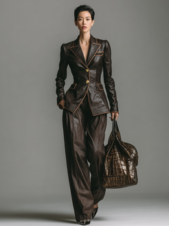 The vintage single-breasted faux leather suit is a striking and sophisticated ensemble that effortlessly melds timeless tailoring with modern materials. This suit typically features a well-fitted single-breasted jacket with a clean silhouette, showcasing sharp lapels and a tailored cut that exudes confidence and refinement. The faux leather fabric provides a luxurious appearance while remaining animal-friendly, making it a perfect choice for the eco-conscious fashionista. Whether you’re attending a formal event or looking to make a statement at the office, this vintage-inspired suit offers a versatile option that is sure to turn heads.