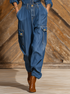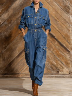 This versatile jumpsuit can be styled in numerous ways to suit your personal vibe. For a laid-back daytime look, pair it with chunky sneakers or combat boots, and roll the sleeves for an effortlessly cool feel. On the other hand, elevate your ensemble for a night out by adding heeled ankle boots and statement jewelry, creating an outfit that transitions seamlessly from day to night. Whether you're heading to brunch with friends or exploring the city, the vintage lapel multi-pocket jumpsuit is a stylish statement piece that combines comfort with a chic, street-smart edge.