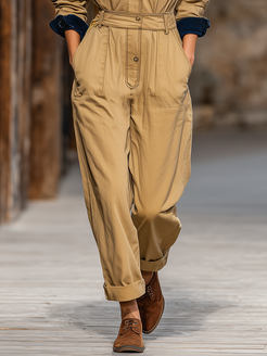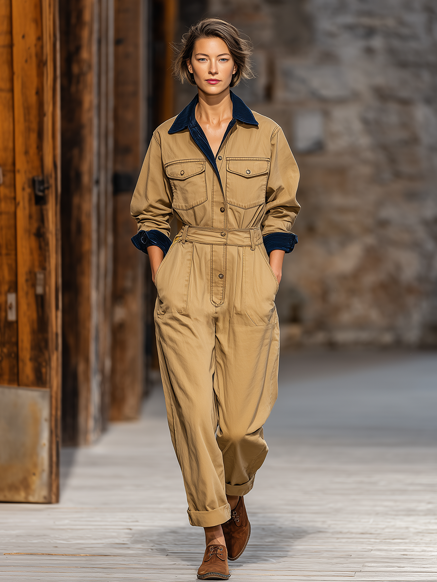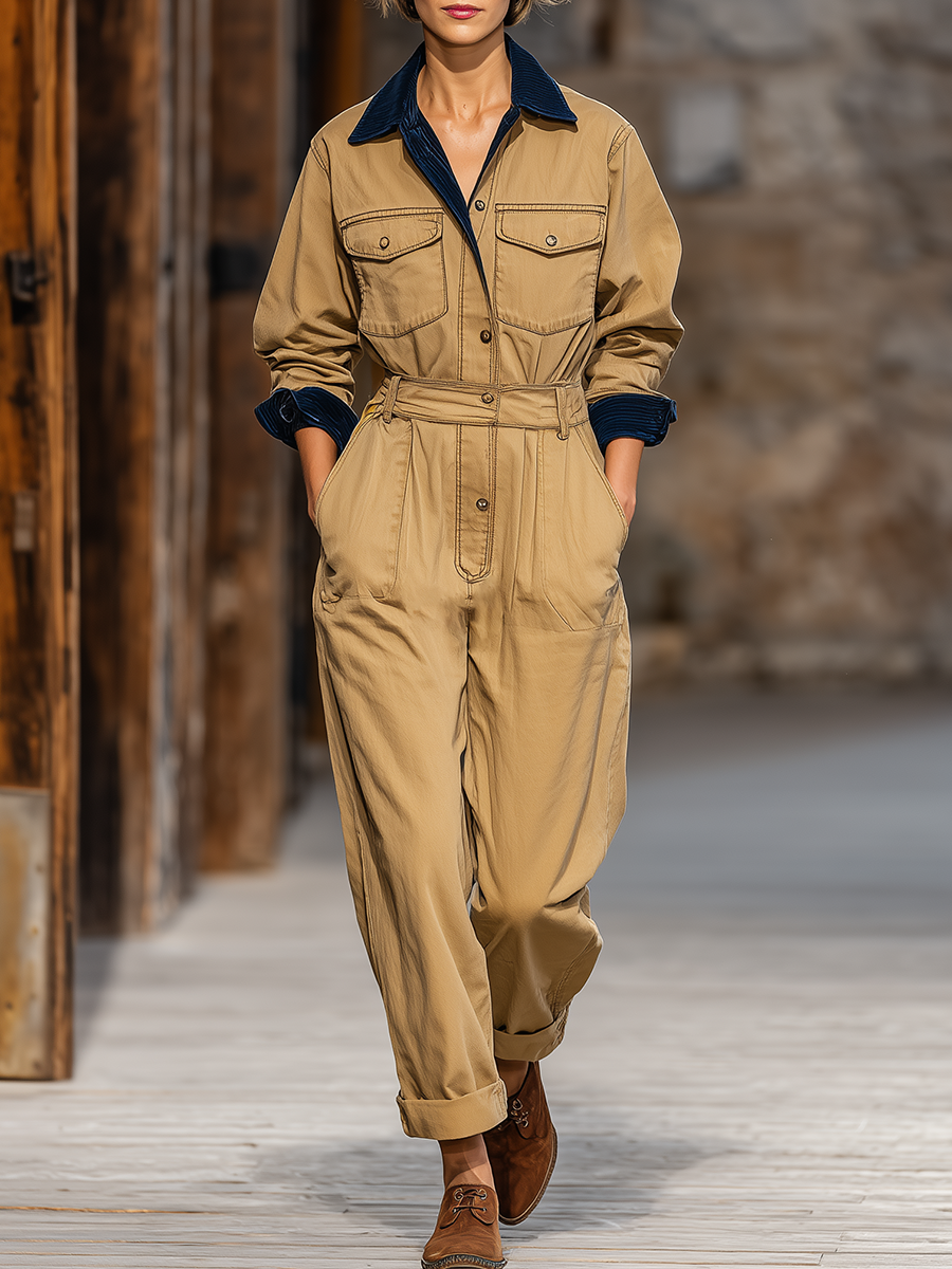 The vintage street style multi-pocket workwear jumpsuit is a trendy take on classic utility fashion, designed to deliver both style and functionality. Crafted from durable fabric, this jumpsuit showcases a relaxed fit that flatters various body types while offering comfort for all-day wear. Its design features a classic collar and an array of strategically placed multi pockets, providing ample storage for your essentials while adding an authentic workwear aesthetic. This piece embodies the spirit of vintage fashion, making it a versatile addition to any wardrobe.