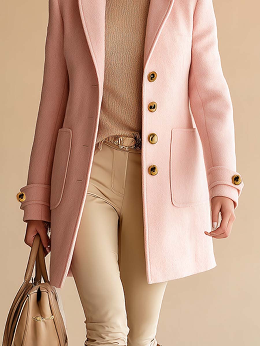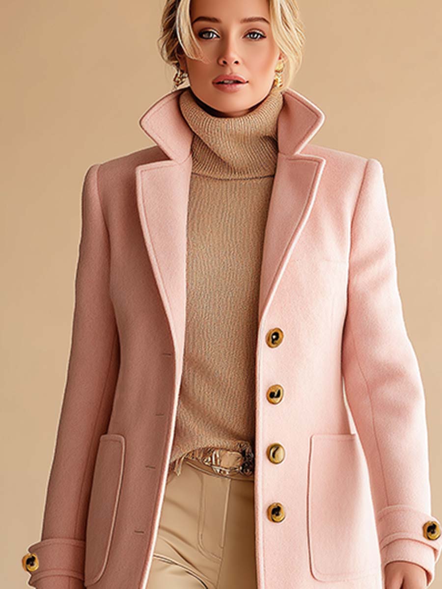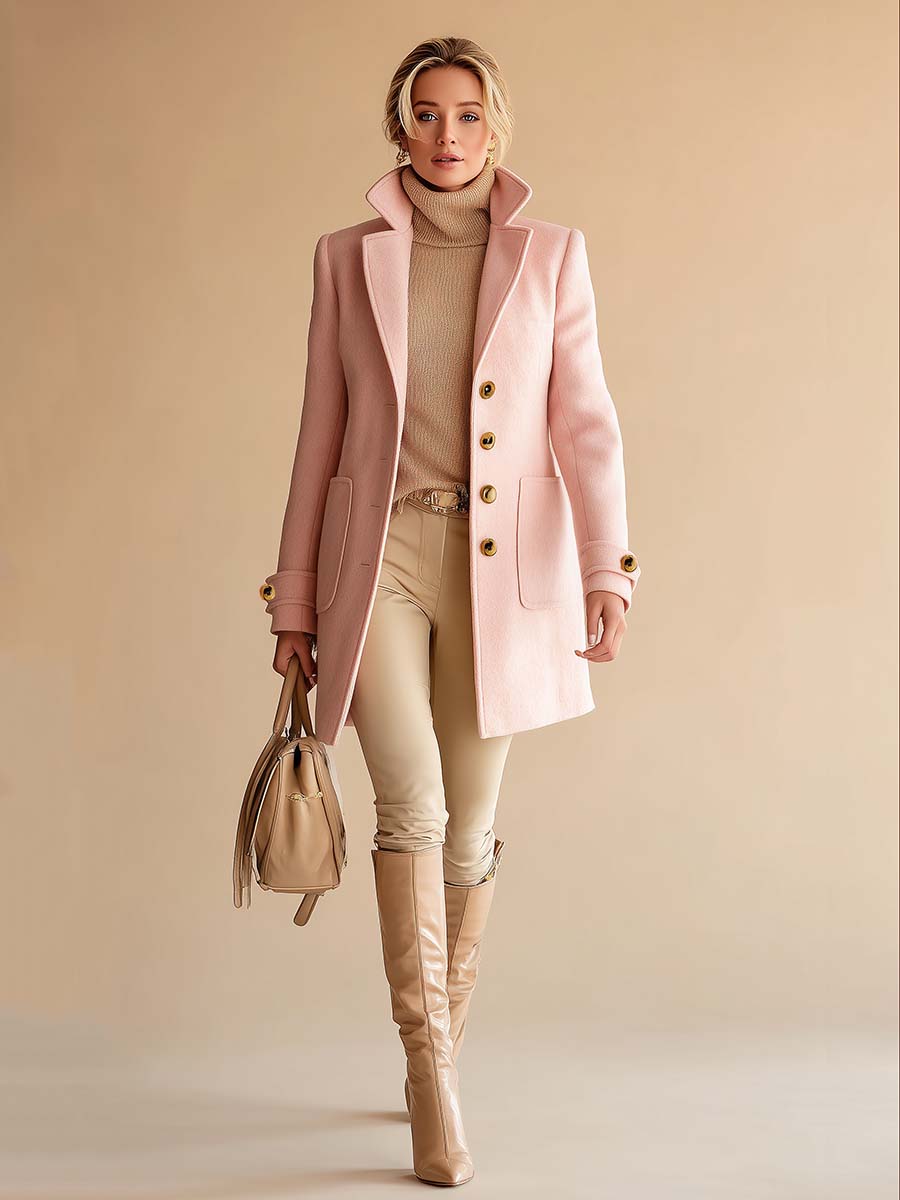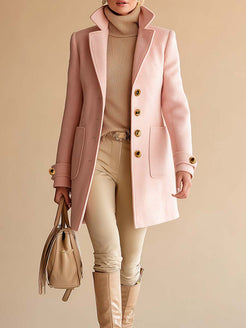 This vintage urban pink cashmere long coat is a comfortable and chic outerwear piece, perfectly blending warmth and style. It provides warmth in cooler weather while showcasing a stylish silhouette. The lapel design adds a sculpted look, creating a sophisticated and feminine look.