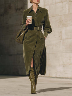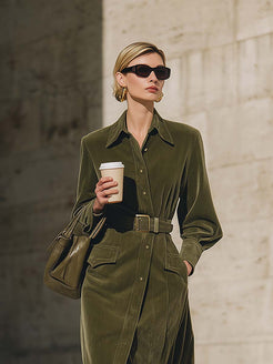 This stylish vintage green velvet long-sleeved tie-down midi dress is ideal for daytime outings, creative workwear, date nights, or seasonal events. Paired perfectly with ankle boots and a wide-brimmed hat, it accentuates the waist, seamlessly blending versatile vintage charm with modern comfort.